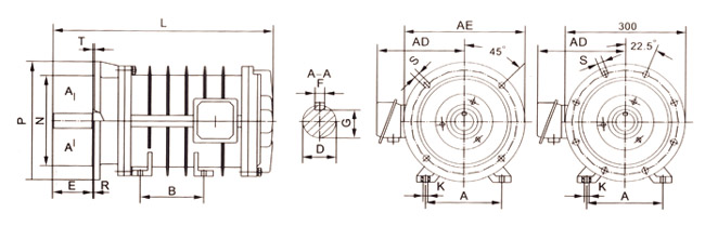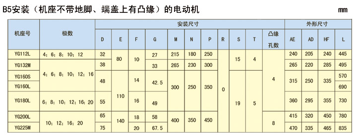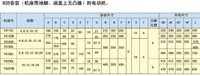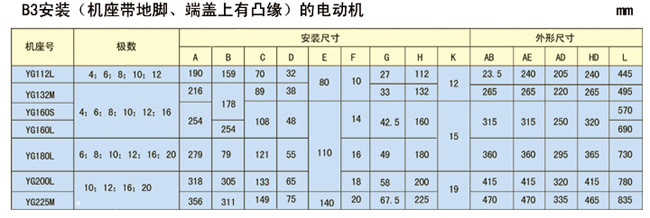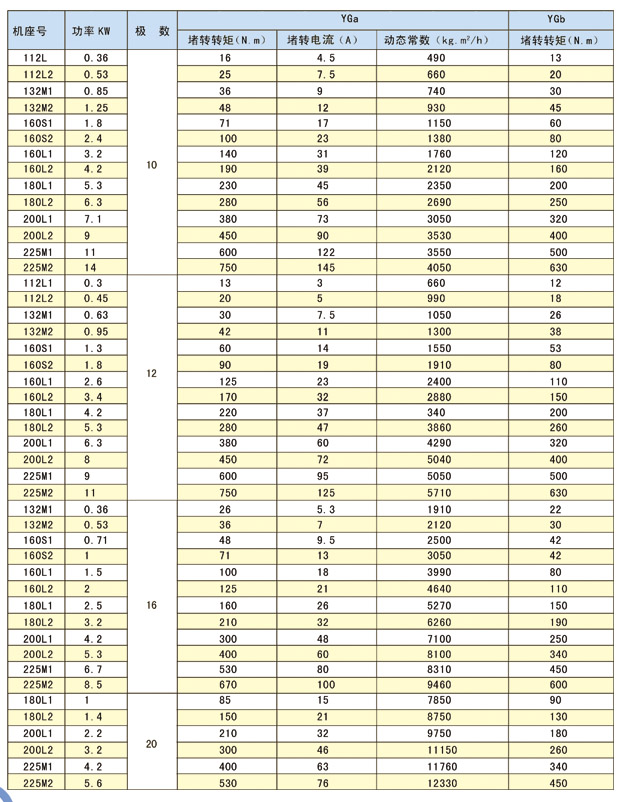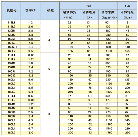 YG系列輥道用三相異步電動機分別設(shè)計成YGA和YGB兩種工作型式,YGA適用于工作輥道,工作制為S5,YGB適用于輸送輥道,工作制為S1。